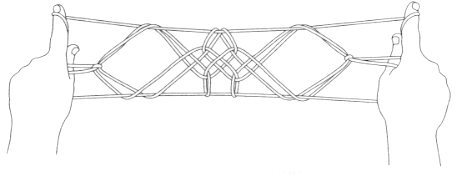 Figures that require artificial manipulation of the strings are tedious to make and lack a certain elegance. Furthermore, they often turn out lop-sided since it is very difficult to manipulate the strings symmetrically when ‘knots’ prevent them from sliding past one another smoothly.