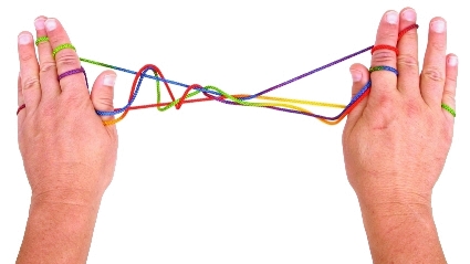 String figures are most often formed on the hands, but occasionally they require the assistance of the mouth, toes, knees, neck, or elbows.